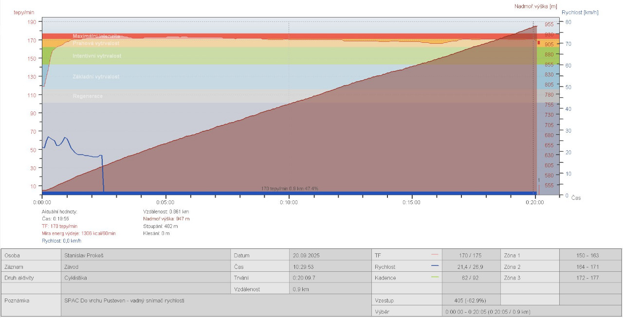 Poslední akcí byla časovka na Pustevny, která letos připadla na sobotu 20. září. Krásné podzimní počasí a zajel jsem celkem slušný čas. Na třetí místo v kategorii mě chybělo 36 vteřin. Příjemná tečka na závěr sezóny.