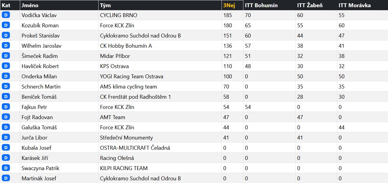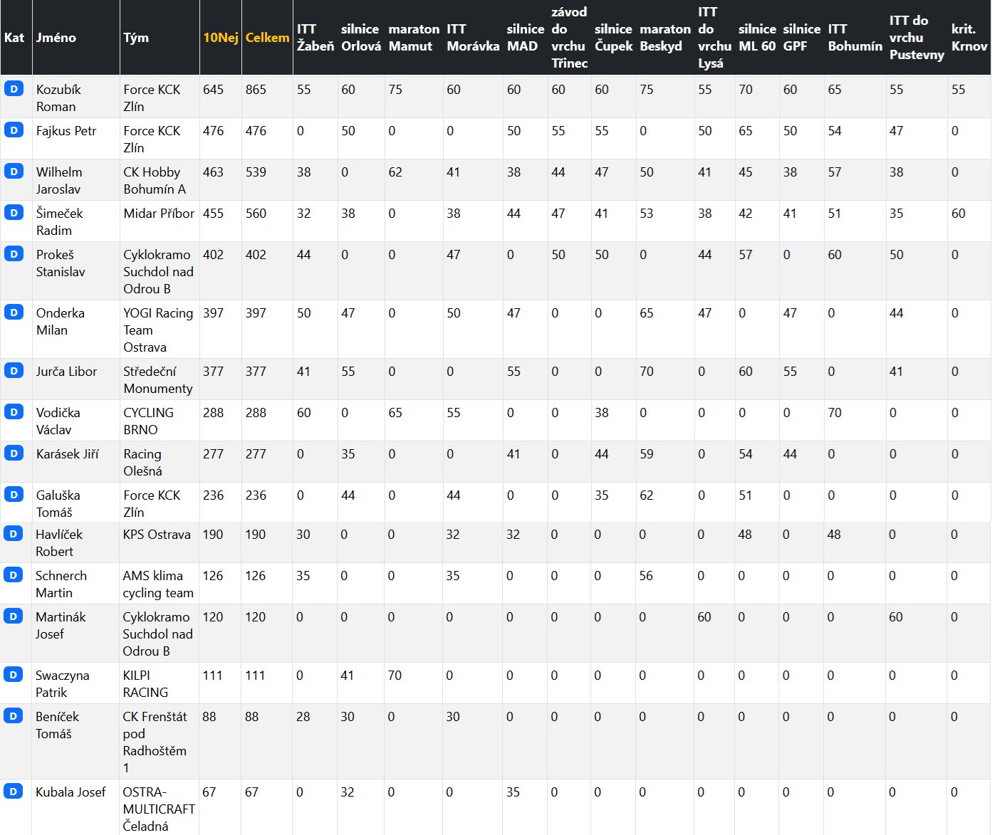 - výsledková listina kategorie D