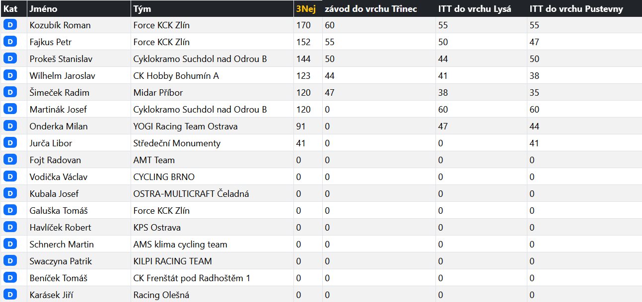 - výsledková listina Lysá Hora – pořadí kategorie D
