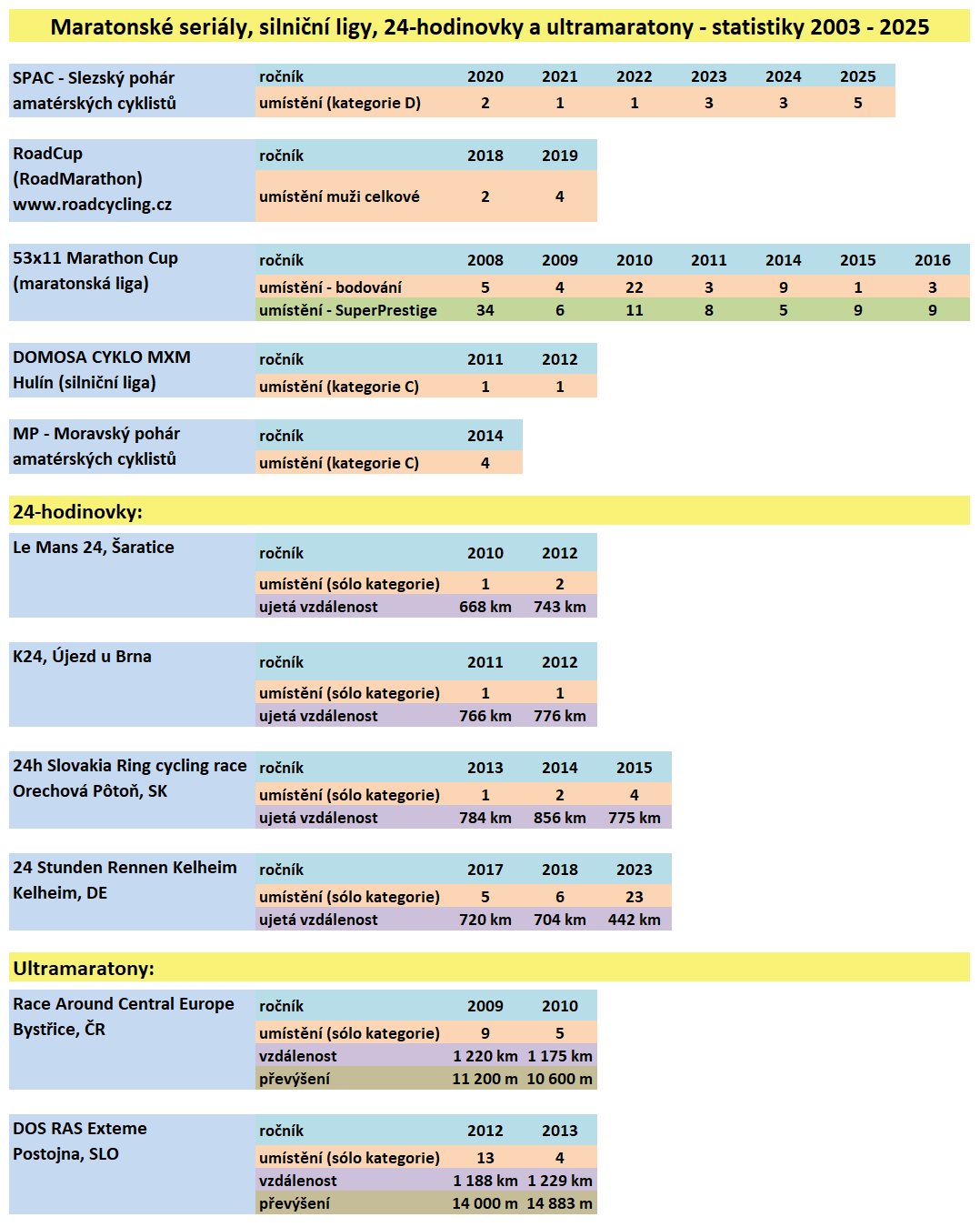 - moje podrobné statistiky z ročníků 2003 až 2025